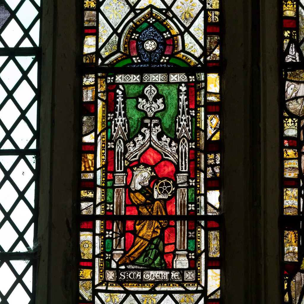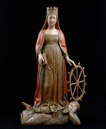 St. Catherine is one of the “Fourteen Holy Helpers” and the patron of philosophers and scholars around the world. According to legend she was an extremely learned young person of noble birth who protested the persecution of an early minority group and who was able to defeat the most eminent scholars summoned to oppose her. Sentenced to death for converting to Christianity, the spiked wheel by which she was to be killed broke when she touched it. She is a notable virgin martyr and St. Joan of Arc claimed that Catherine was among the heavenly voices that guided her. If you think about it anachronistically the fact that St. Catherine didn’t just stop the wheel, she broke the wheel, brings to mind modern people and even literary characters fighting to end oppression of all kinds and promoting freedom to think, learn, and grow.